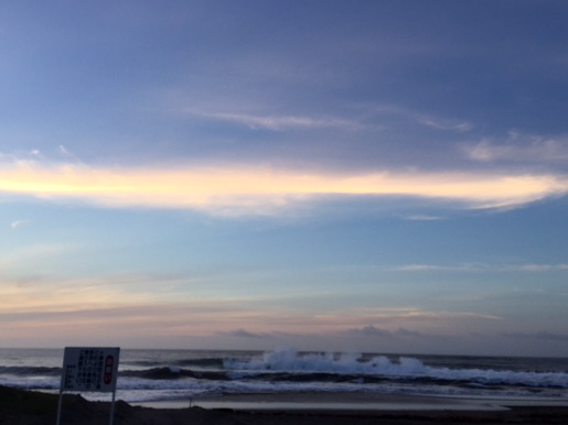 波はコシ〜ハラサイズとなっていますが時々ムネ〜サイズのウネリが入り台12号からの影響が出始めたのかもしれません。