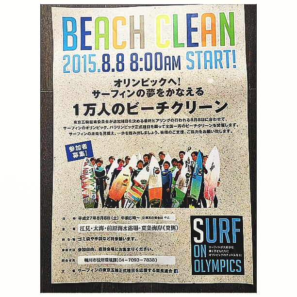 それにともない、東京五輪委員会が追加種目を決める最終ヒアリングの行なわれる8月8日に合わせて、サーフィンのオリンピック、パラリンピック正式種目を願って全国一斉のビーチクリーンを開催します。サーフィンの未来を見据え、一歩を踏み出しましょう。皆様のご支援、ご協力をお願い致します。