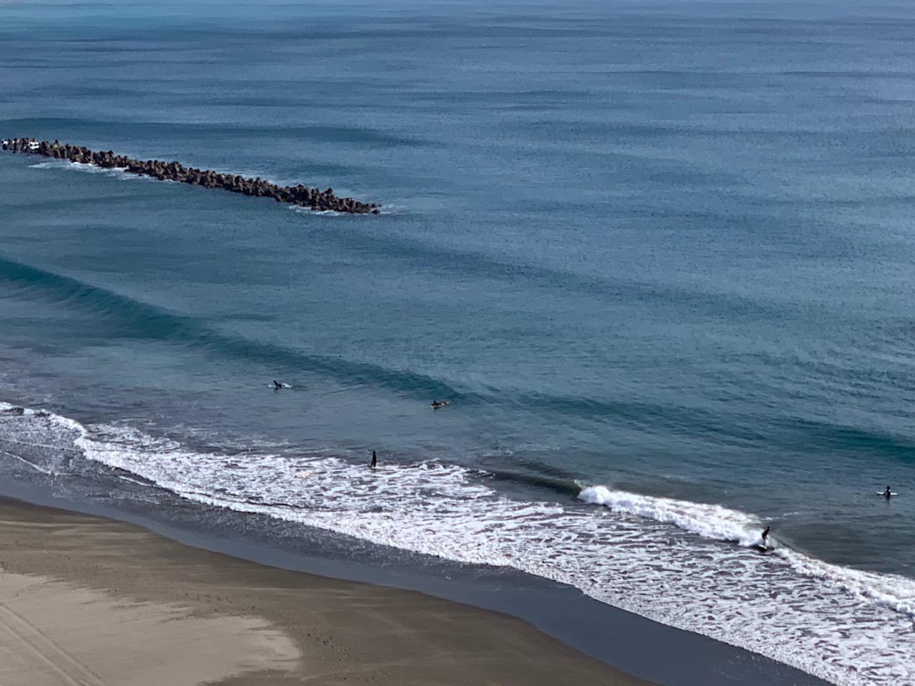 サイズアップが予想されている波はまだ反応は弱くシーサイドP・店前Pはヒザ〜モモ、コシサイズのインサイドブレイクのみとなっています。