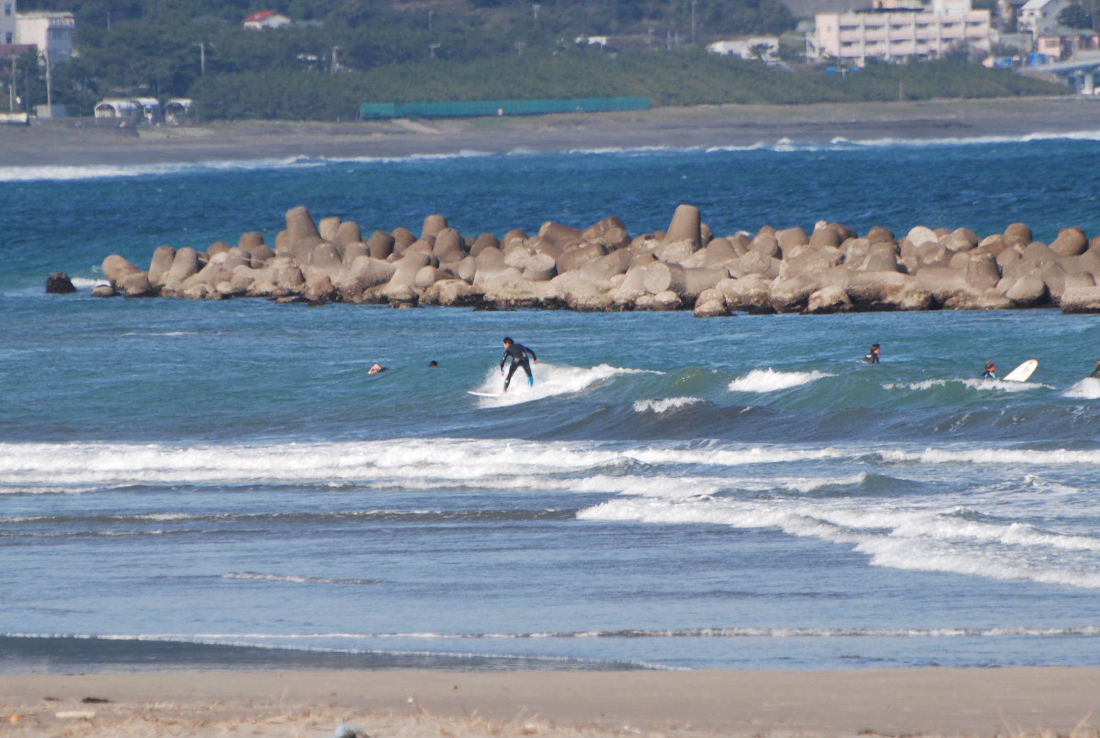 朝イチは風も弱く良い波となっていましたが日中は風が入りバタついたコンディション。