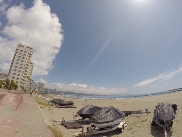 台13号のウネリはまださほどサイズアップせずコシ〜ハラのボヨついたブレイク。