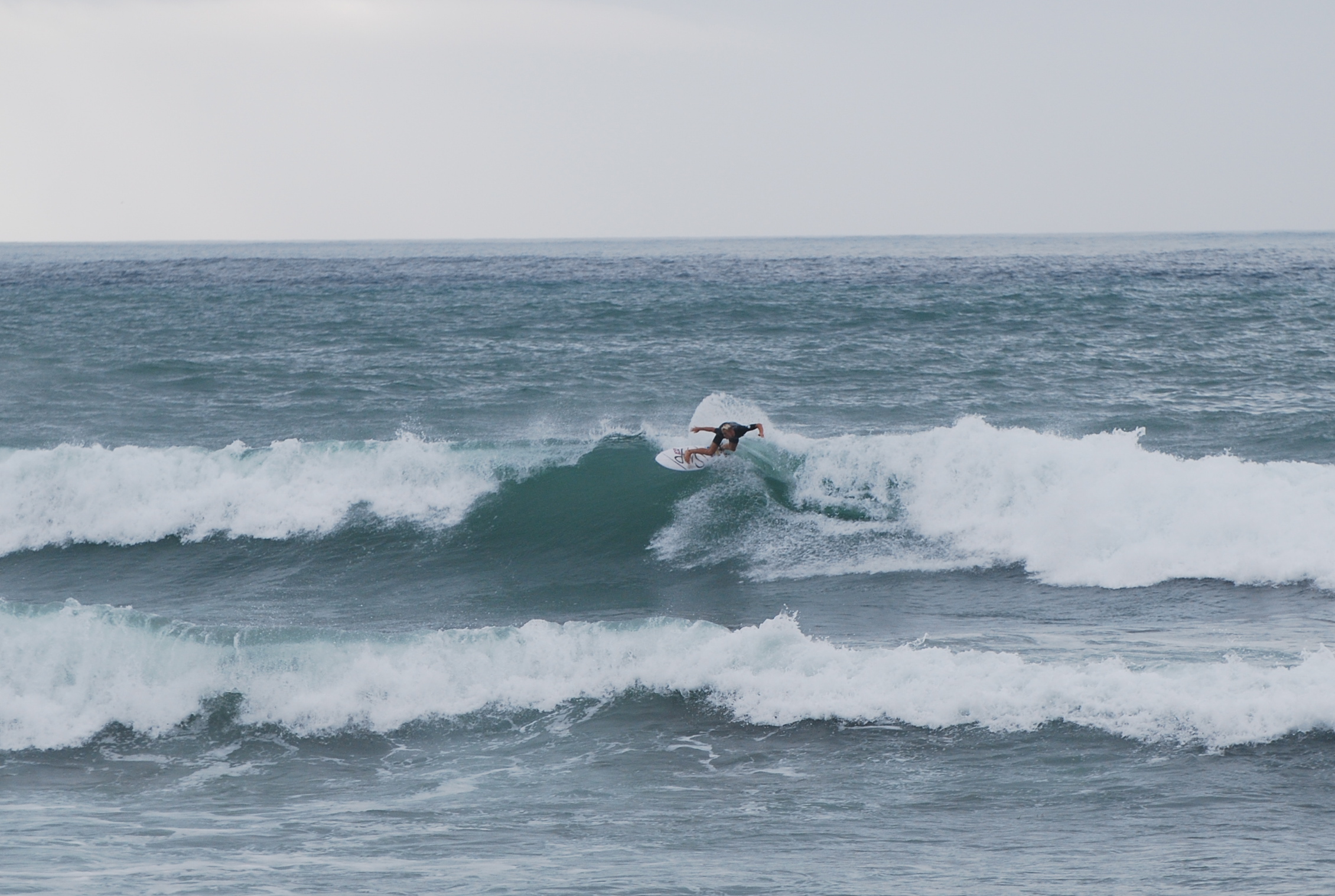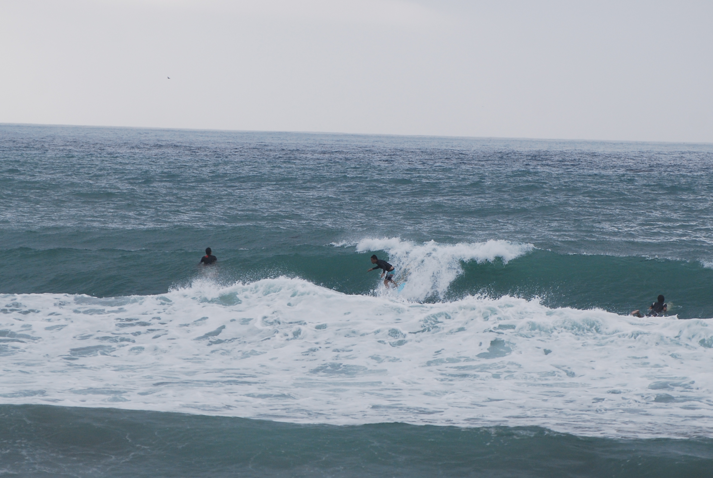 やや面がバタつきヨレも入った波の中、ポジションを選ぶと形良いブレイクも出現!