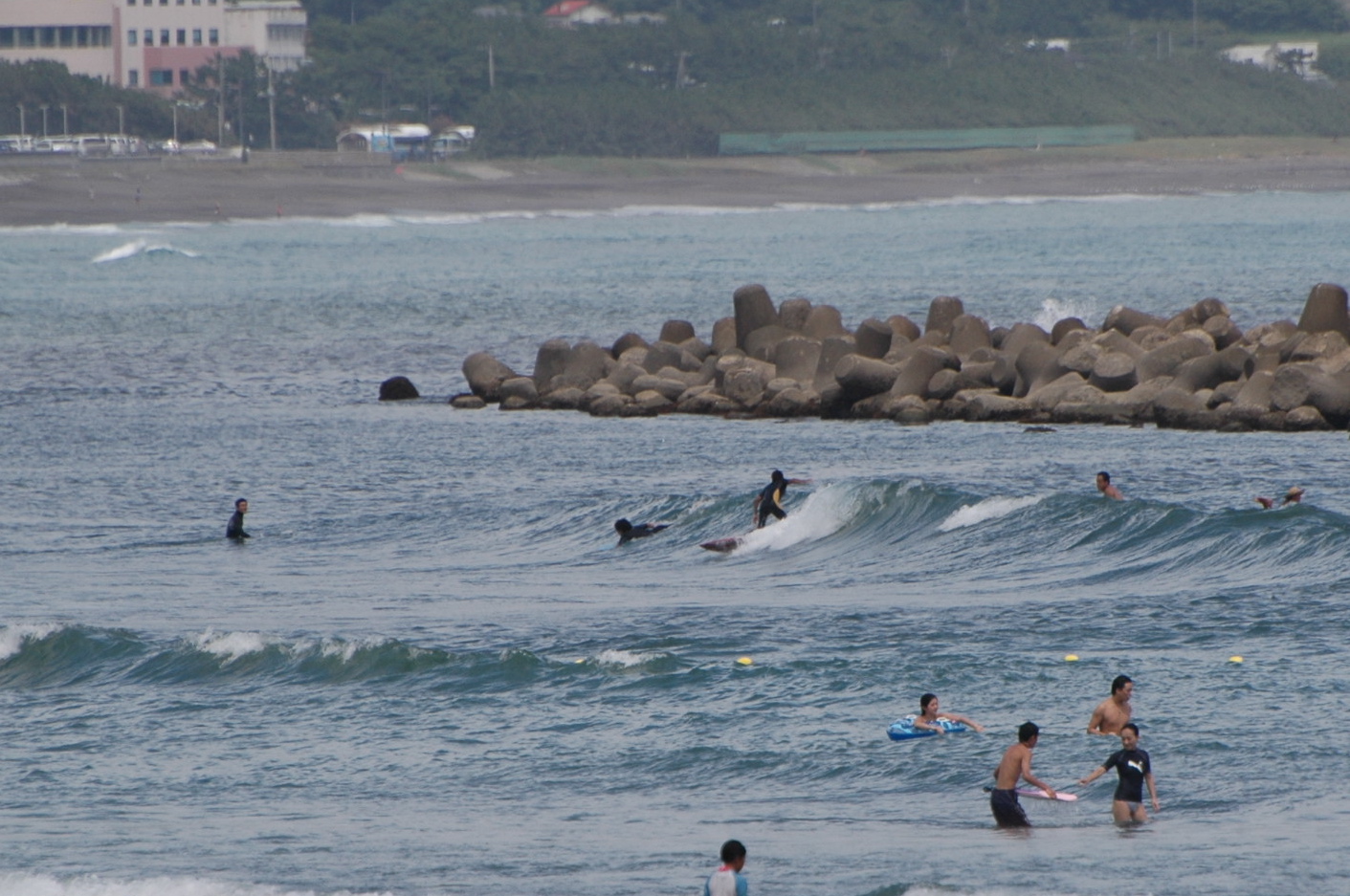 午前中、一瞬の大雨が上がると晴れ間とともにクリーンなコシ〜ハラ前後の波がブレイクしていました。