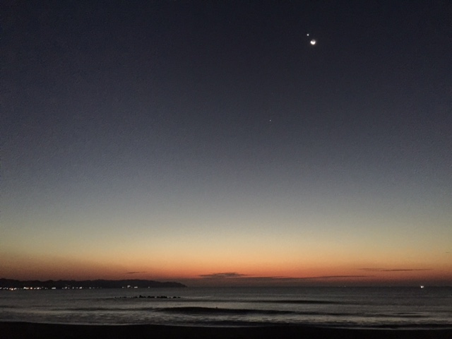 そして明け方の空には三日月と金星のコラボ!