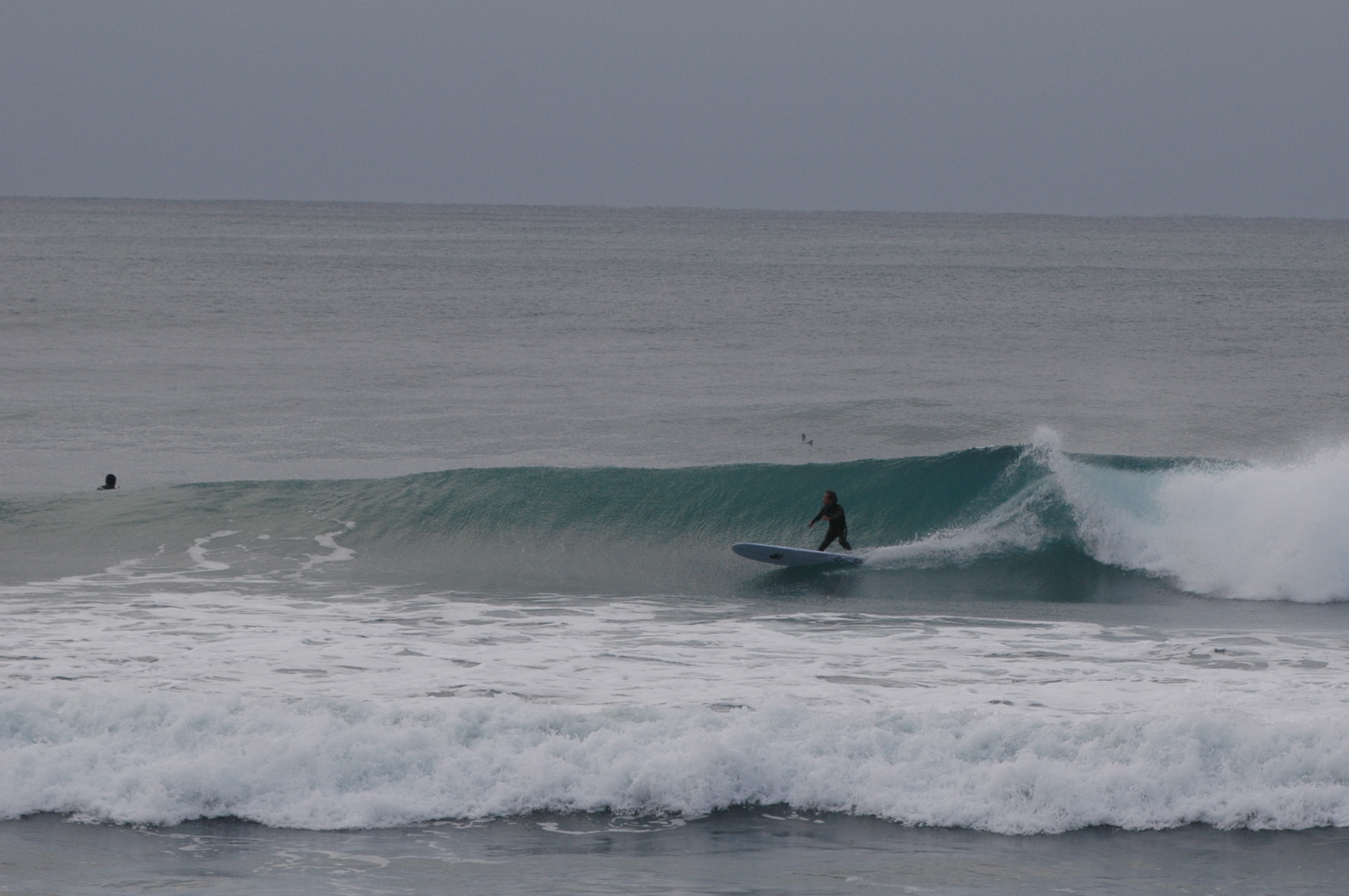 朝イチのマルキPはほぼ面ツル、潮が多くウネリは厚めでブレイクはやや速めとなっていましたがキレ目からテイクオフ出来ればショルダーの張る形良い波に。