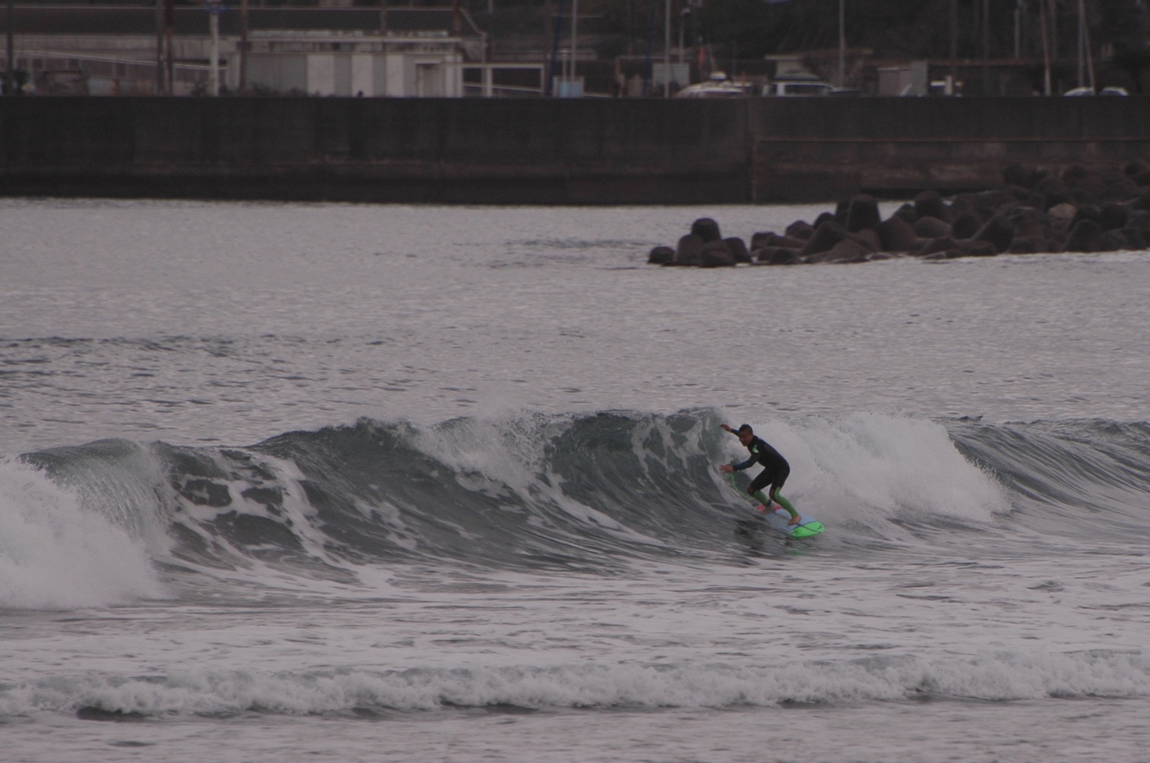 朝イチの波は河口Pでハラ〜たまにムネサイズ、潮が多くよれたブレイクが目立ちました。