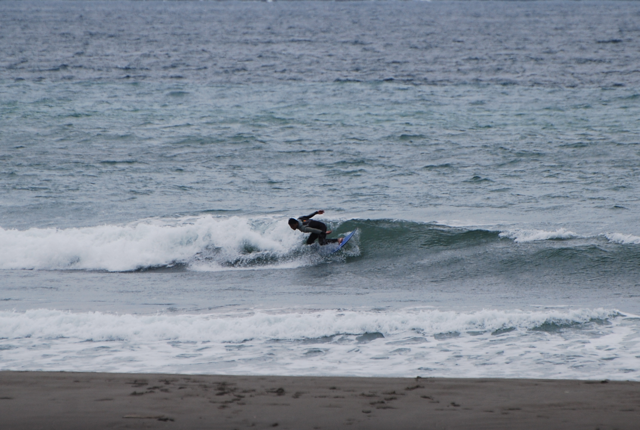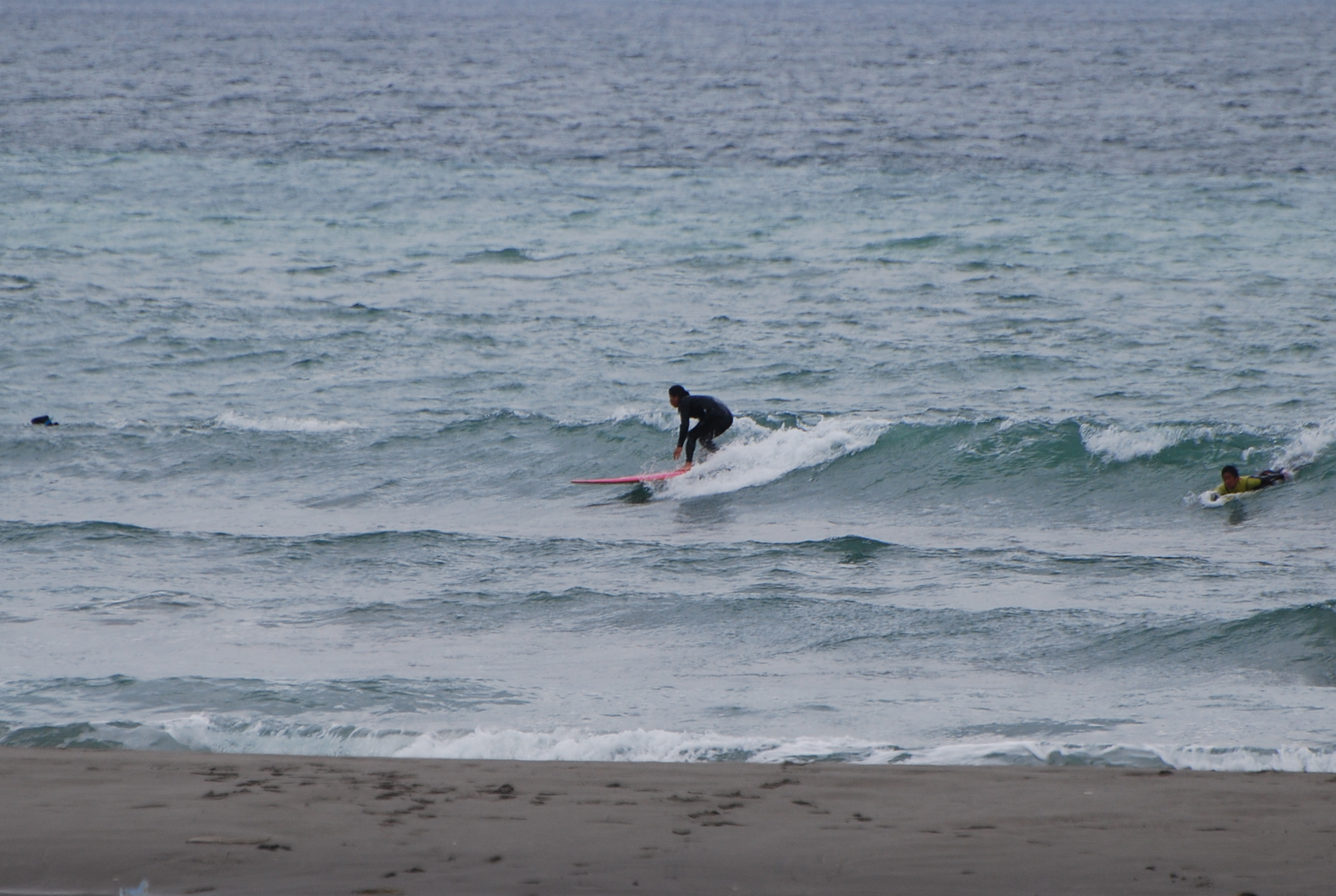 波はコシ〜ハラサイズ、風の影響もありバタついていますがサーフ可となっています。