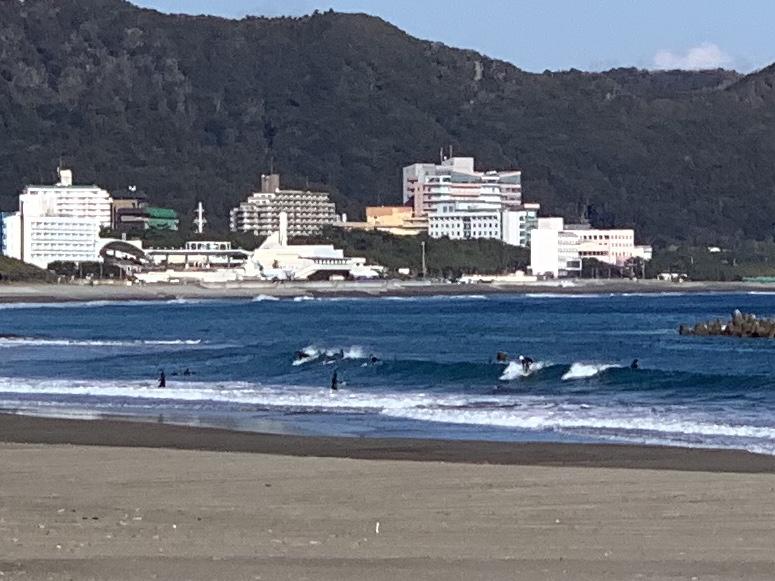 シーサイドP・店前Pでは東〜北東のウネリに反応していますがやはり地形が整わずインサイドでのワイドなブレイク、サイズはコシ前後となっています。