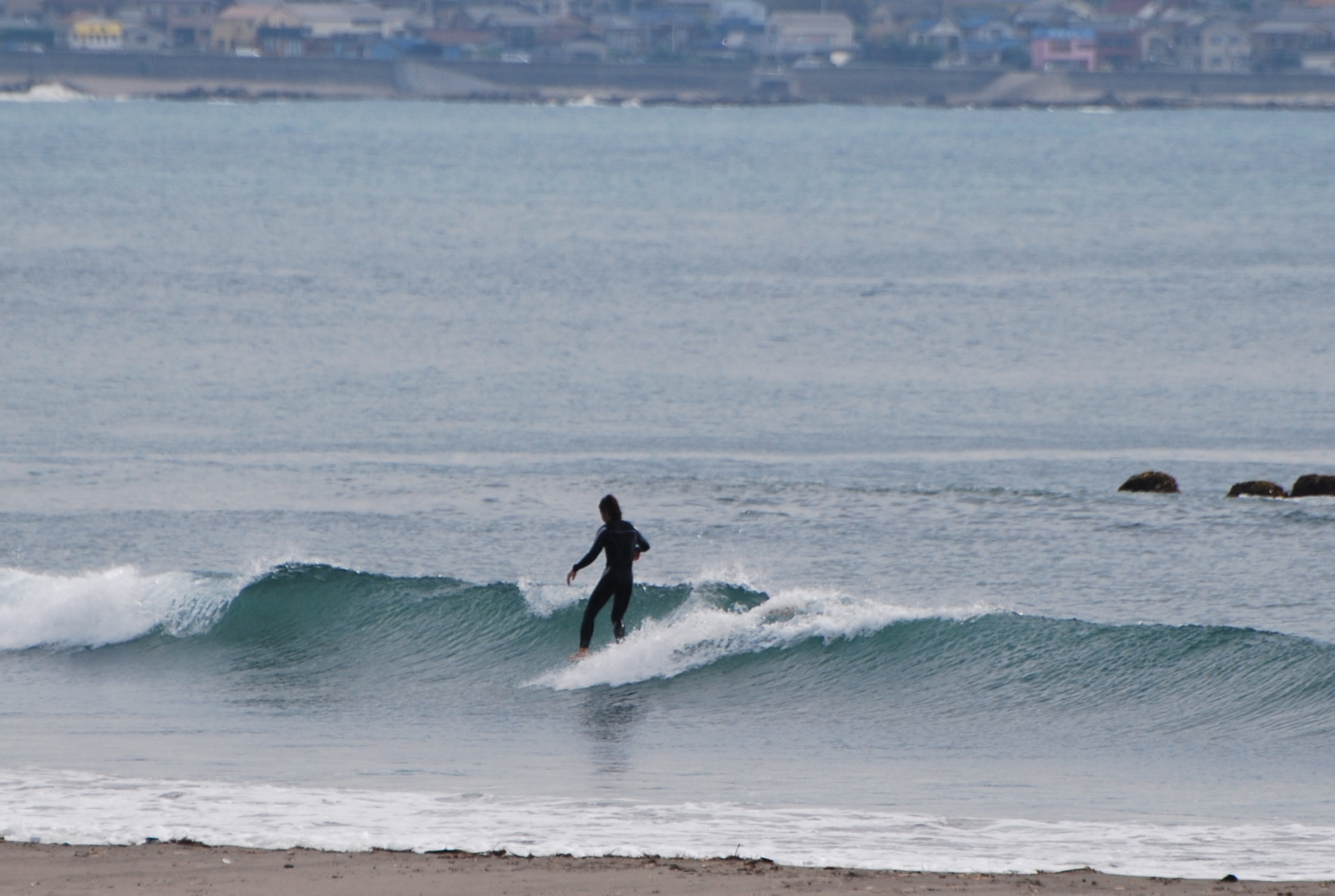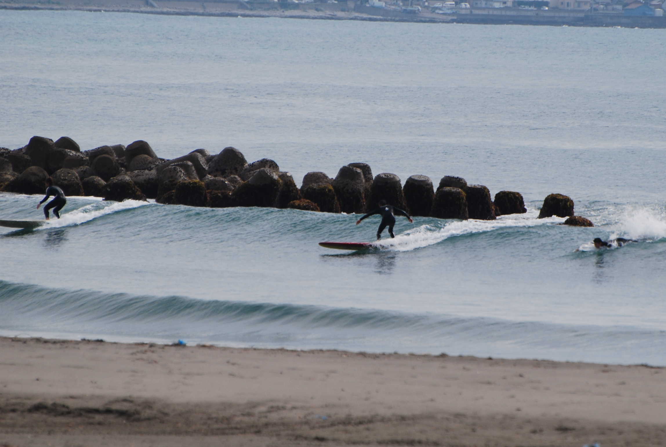 東〜南東のウネリは弱いながらも続きセット間長めのコシ〜ハラサイズ、厚めのメローなブレイクとなっています。