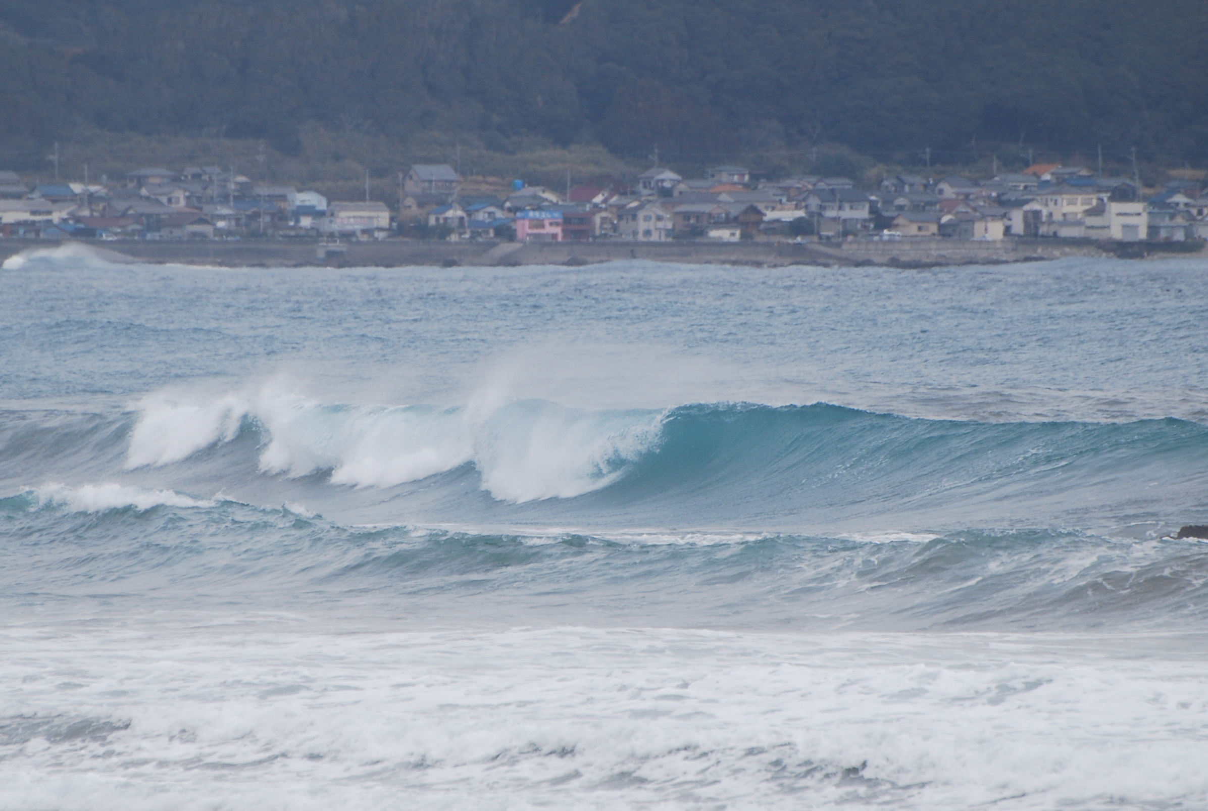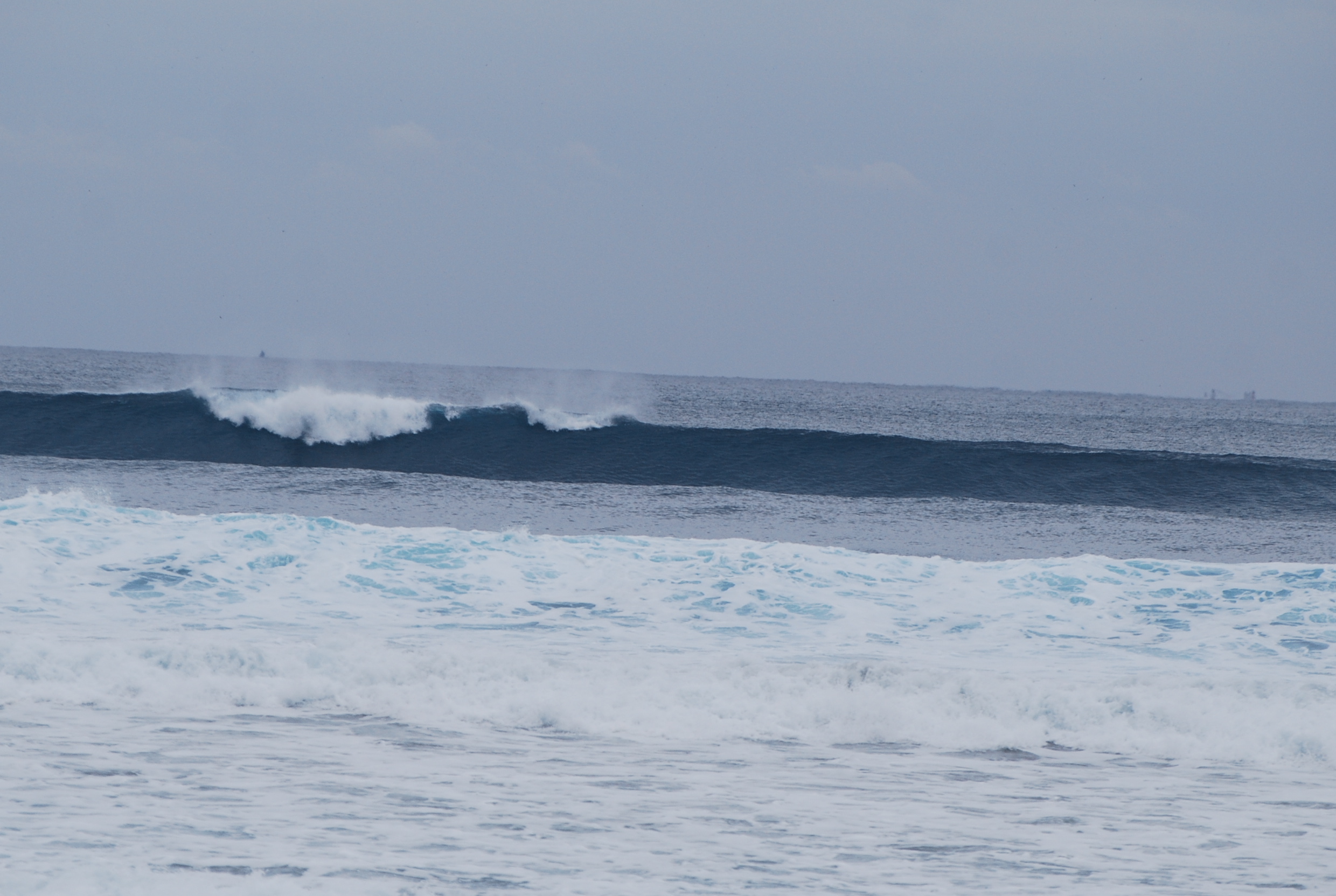 朝イチはアタマ〜アタマオーバー、ピーク厚めのスロープの長い波、セットが入ると。。。
