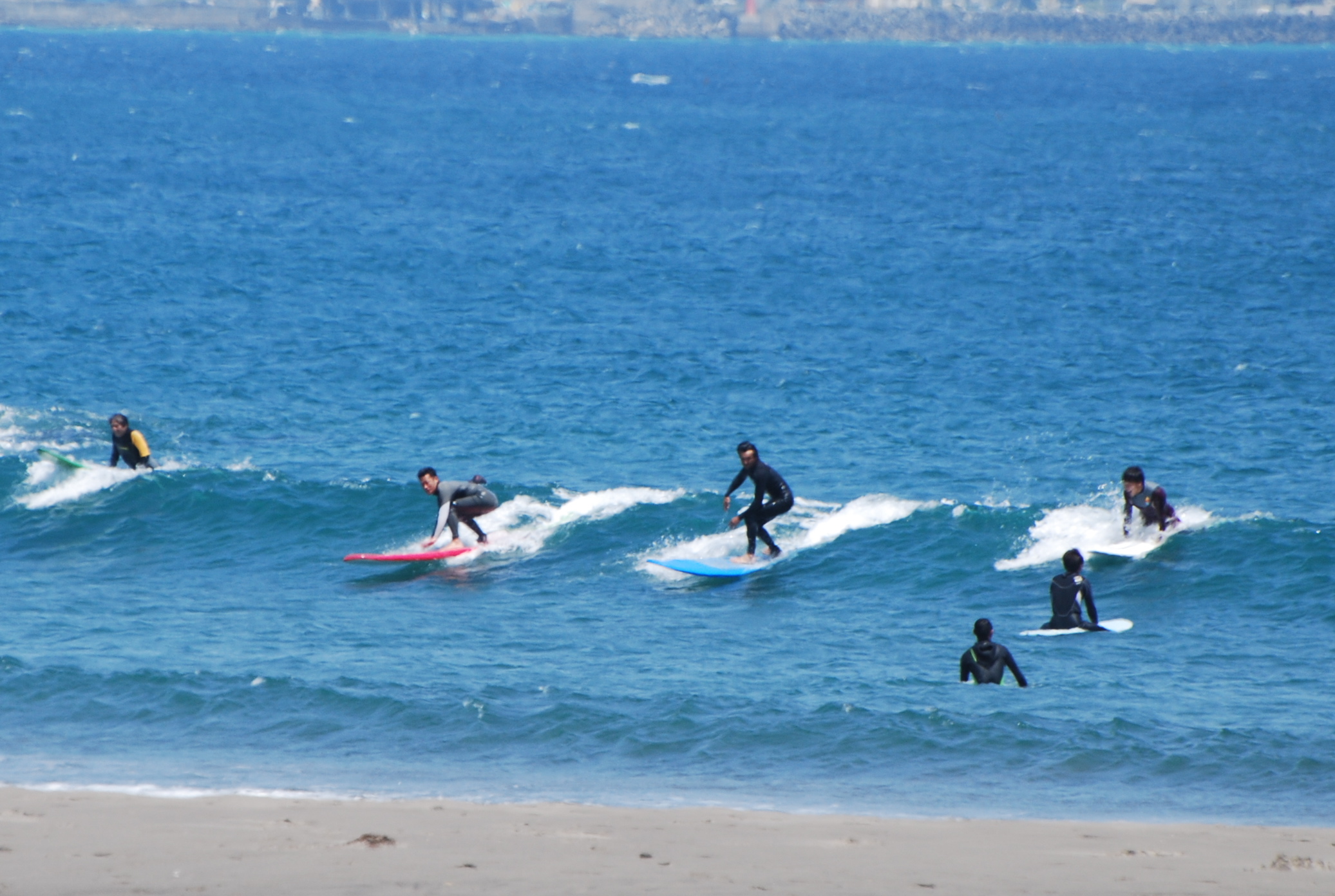 波はセット間隔長めのコシ〜、厚いブレイクの為皆ロングボードを持ち出しまったりサーフ。