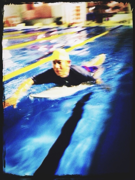 そして今はまだ鴨川限定ですがサーフボードをプールに持ち込んでのパドルトレーニング開催しているということでそちらを体験してきました。