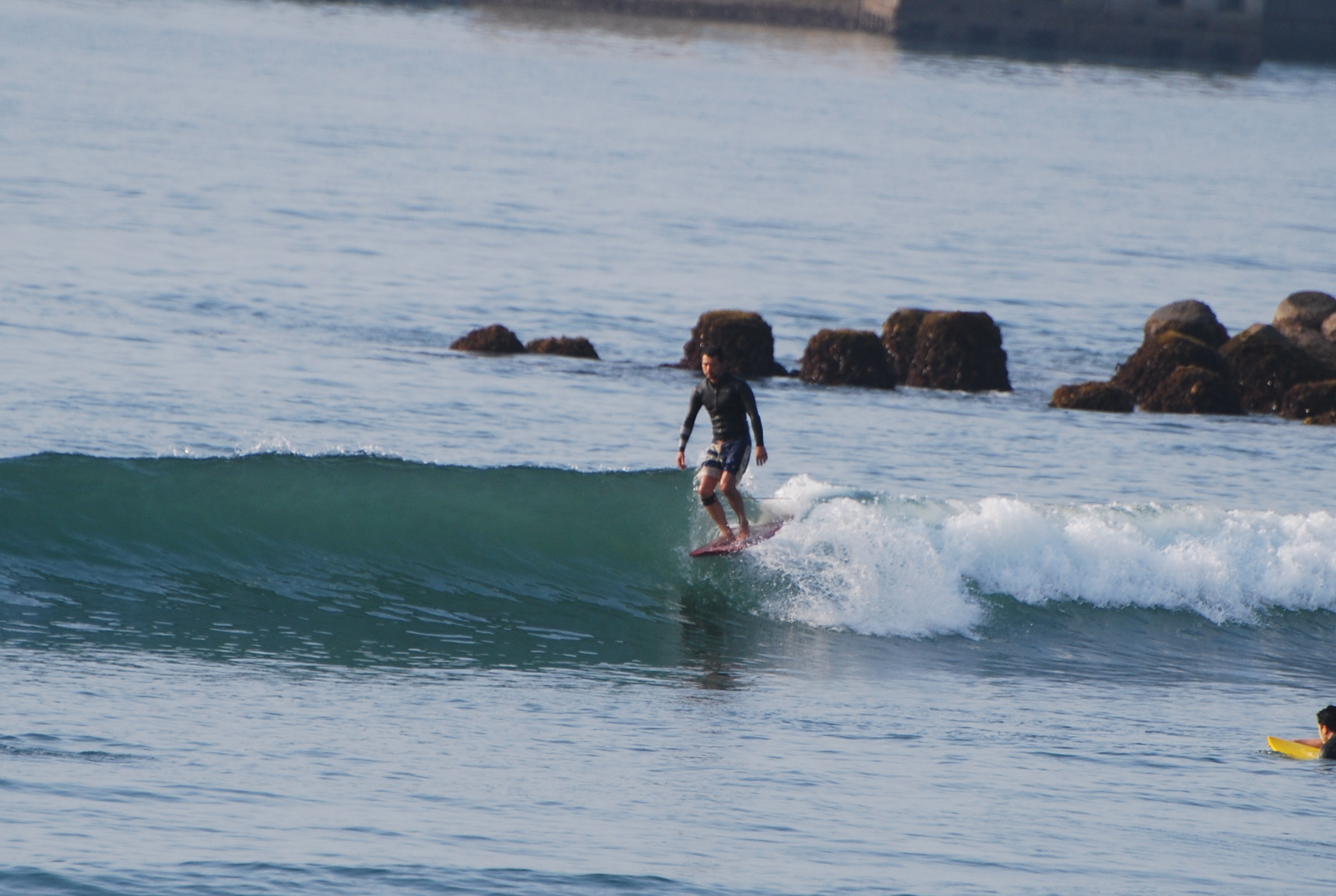 台10号からのウネリはまだ反応していませんが朝イチの海は風も弱くコシ〜ハラ、たまにsetムネサイズ。