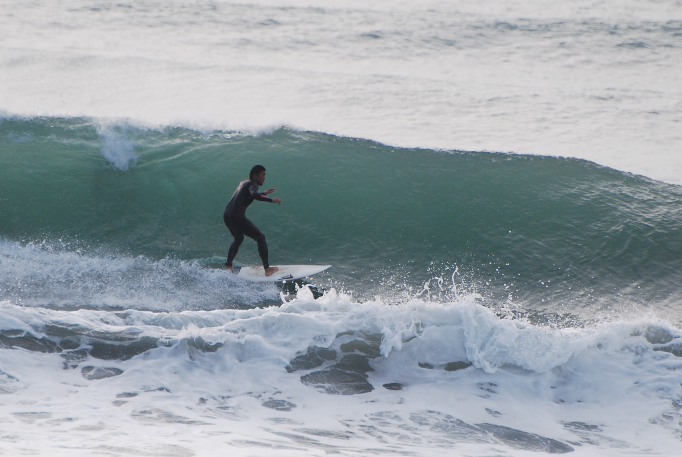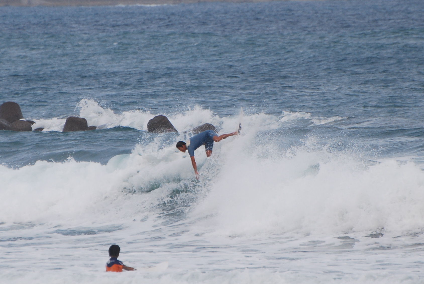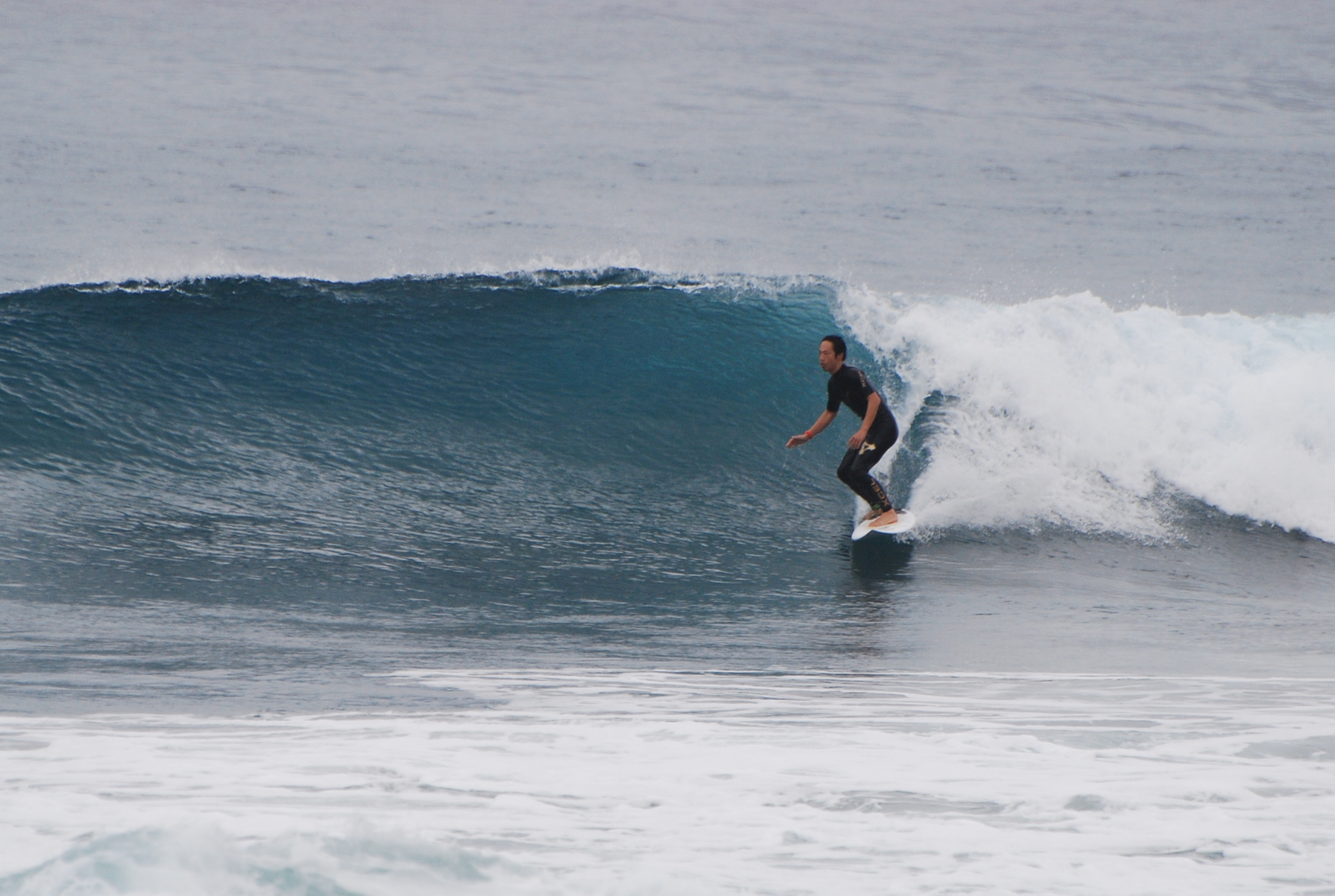 朝イチは風の影響も弱くクリーンなコンディションとなっていましたが日中は東〜北東の風が入りややバンピーな波に。