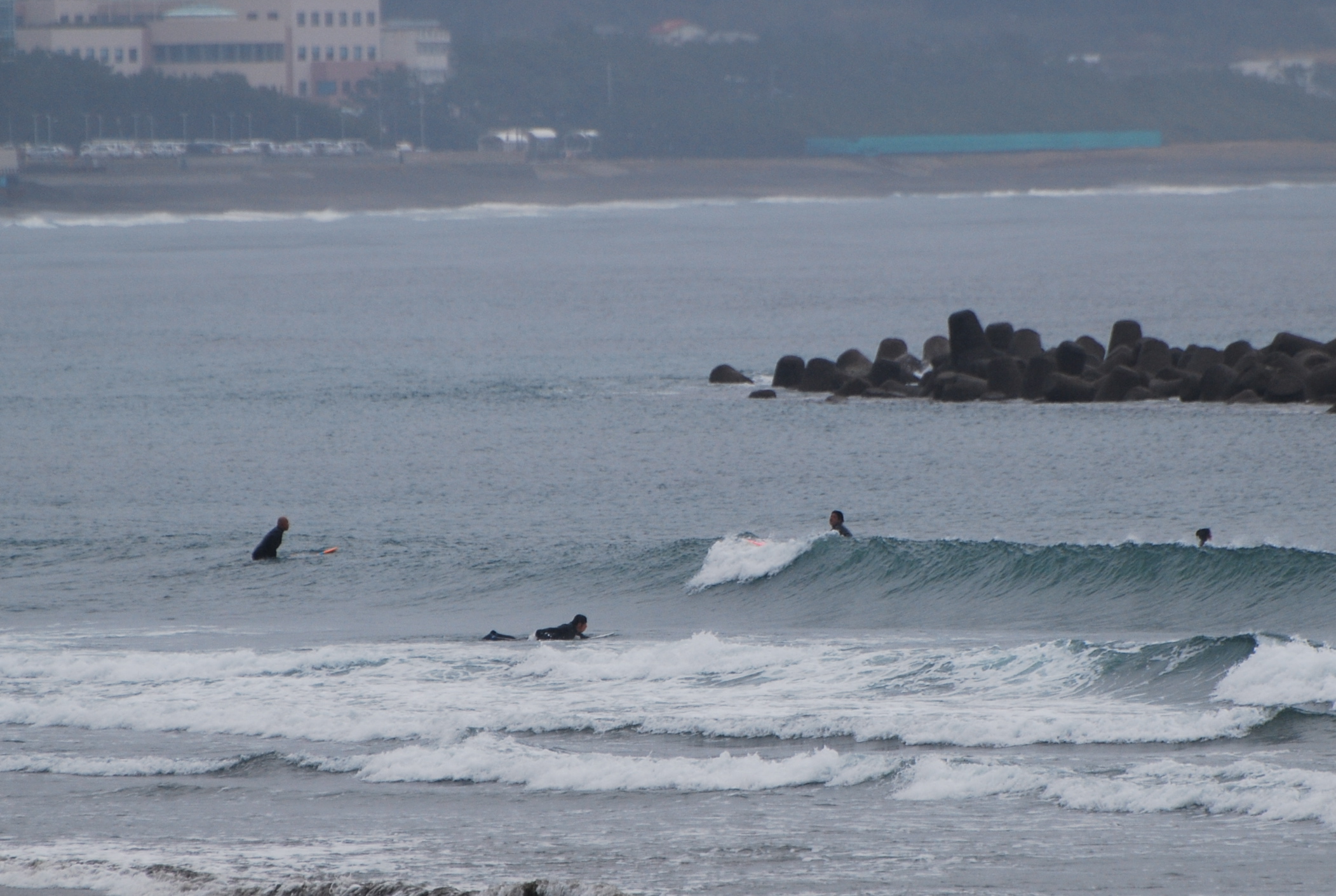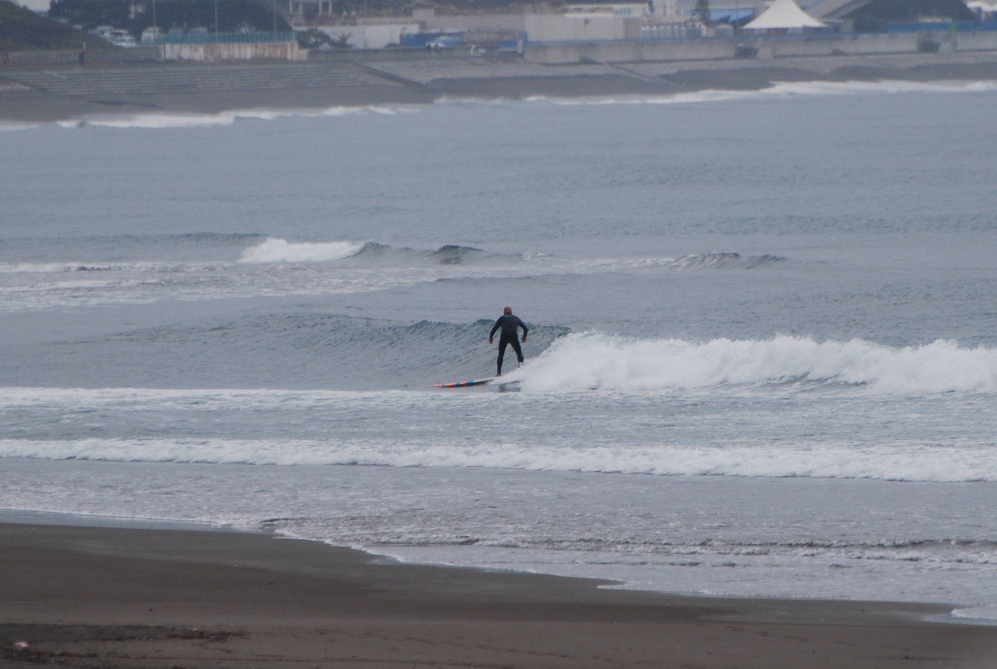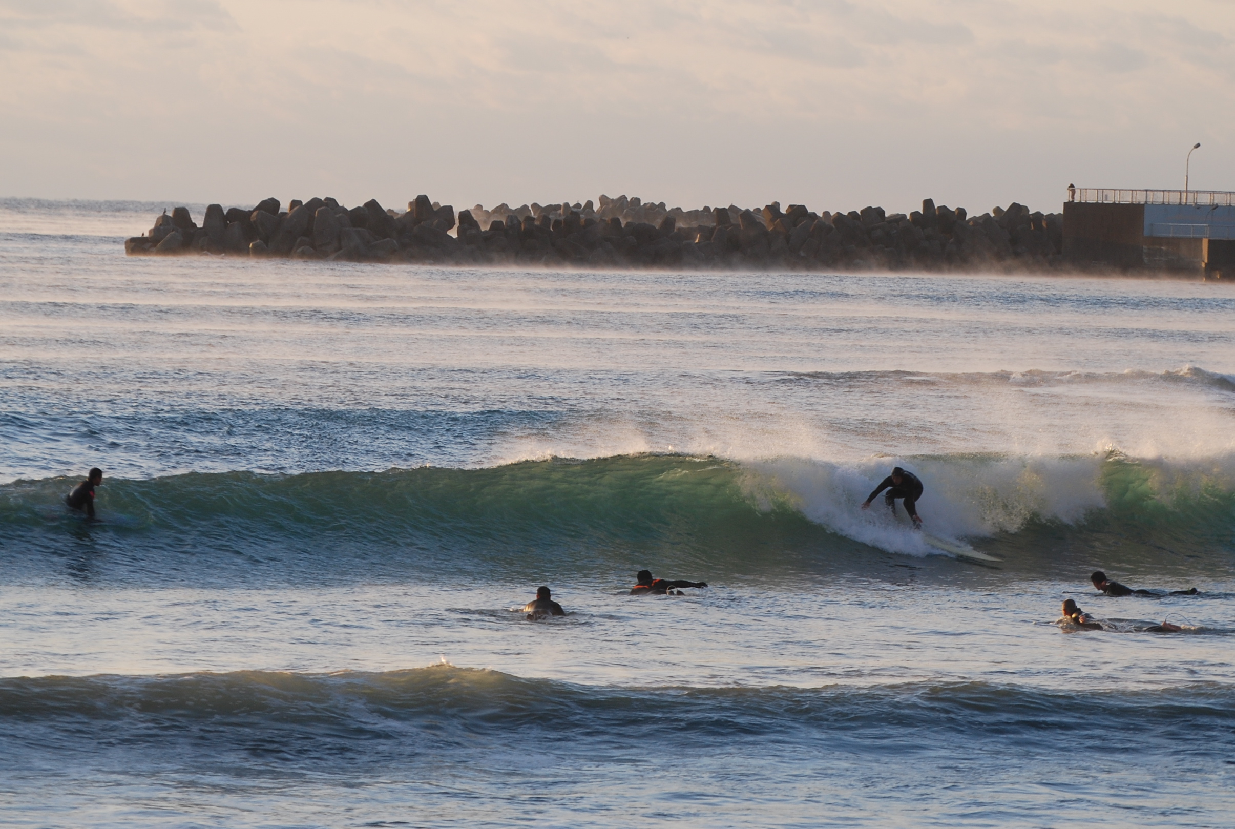 朝イチの波はハラ〜ムネサイズ、ややヨレが入りバラついたブレイクでしたがポジションによっては良い波に。