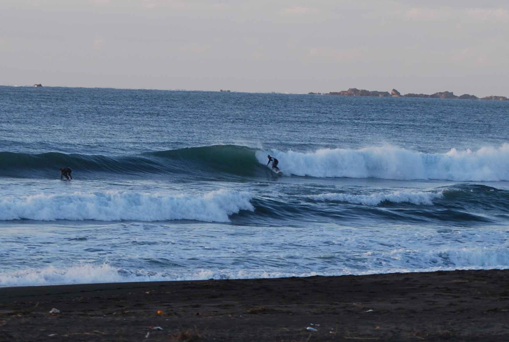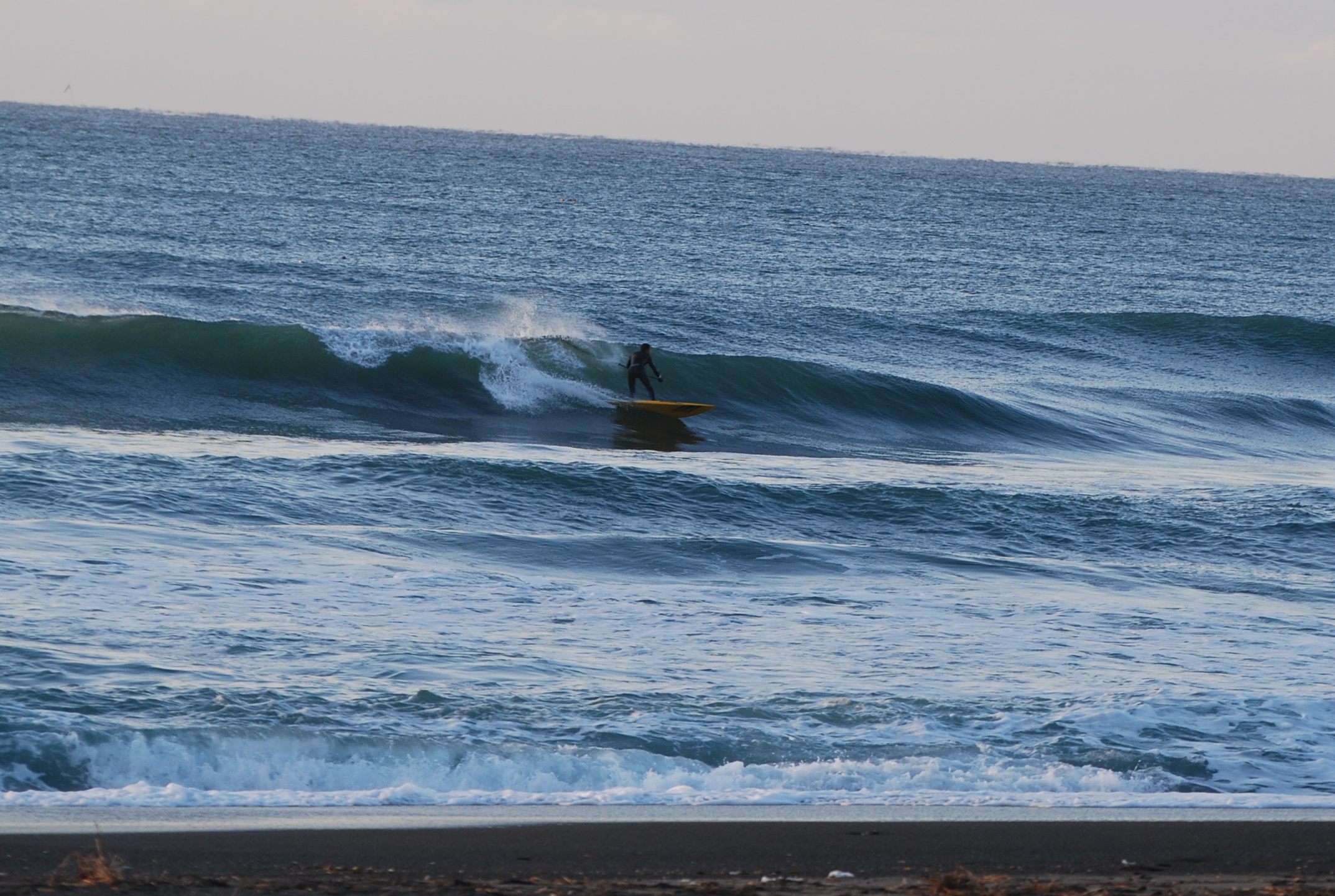 南を向いたポイントでは波数は少なめながらハラ〜ムネの形の良いウネリが届いているようです。