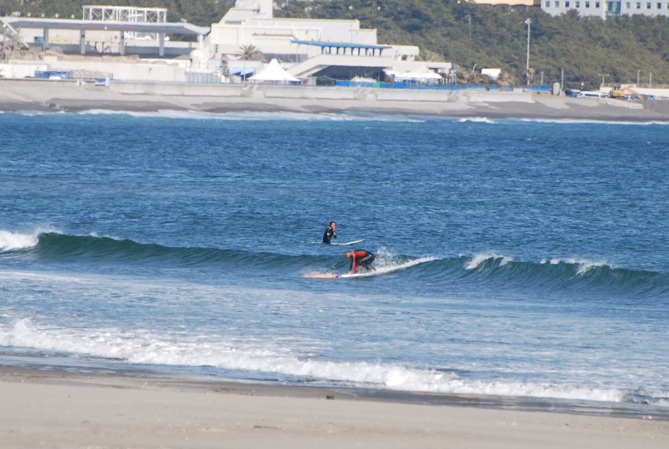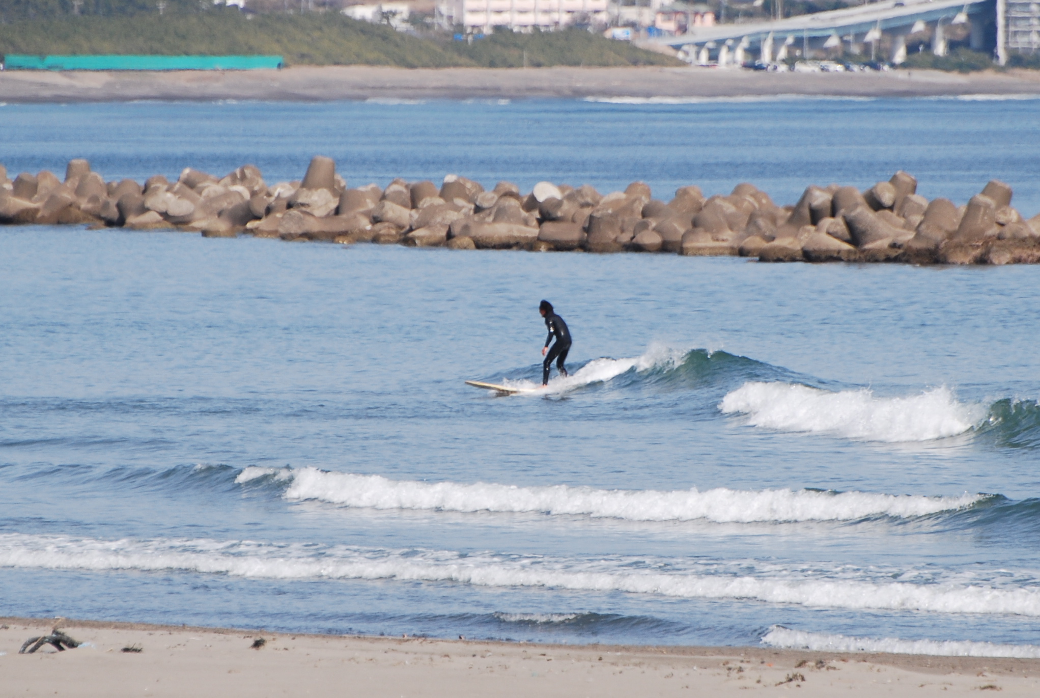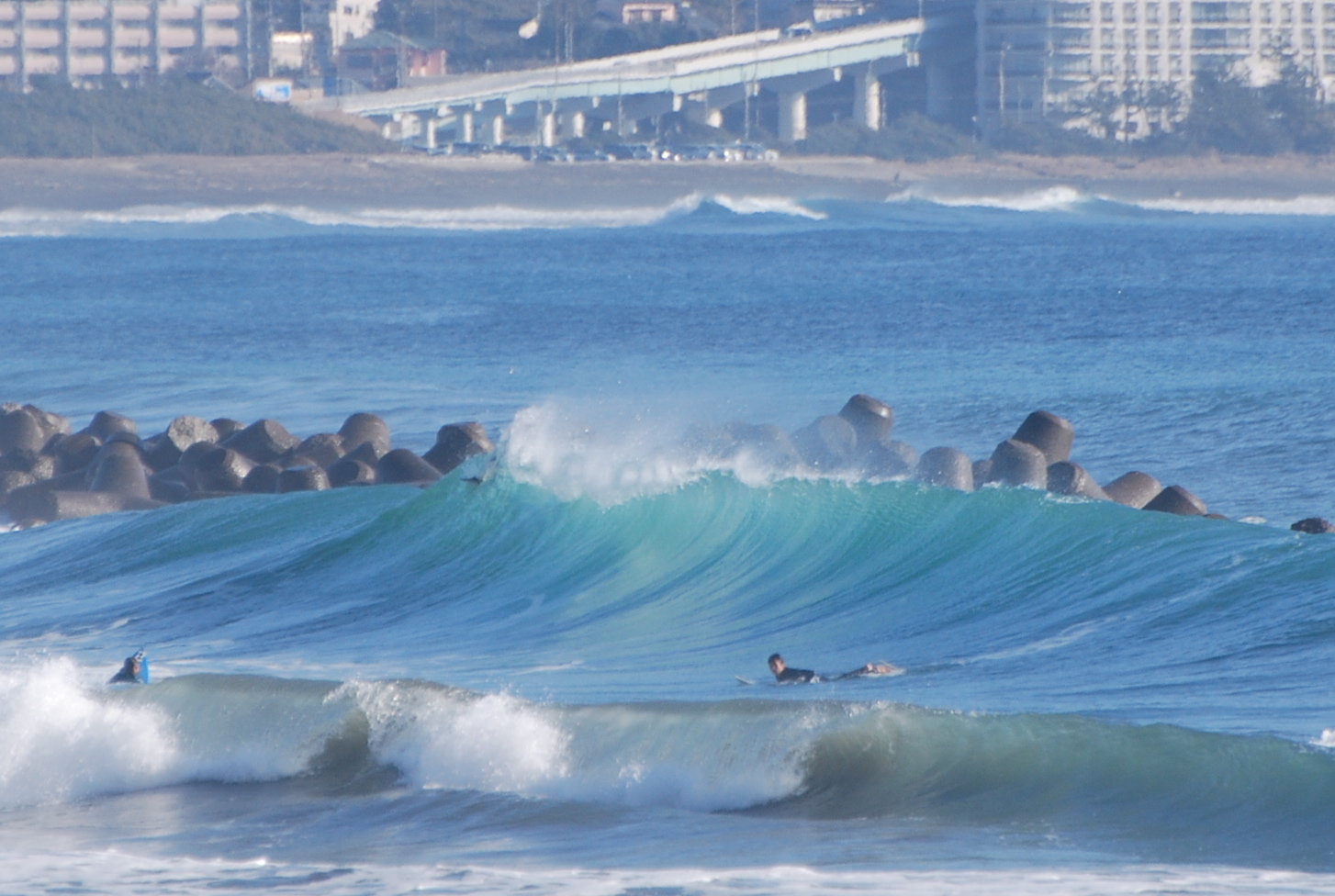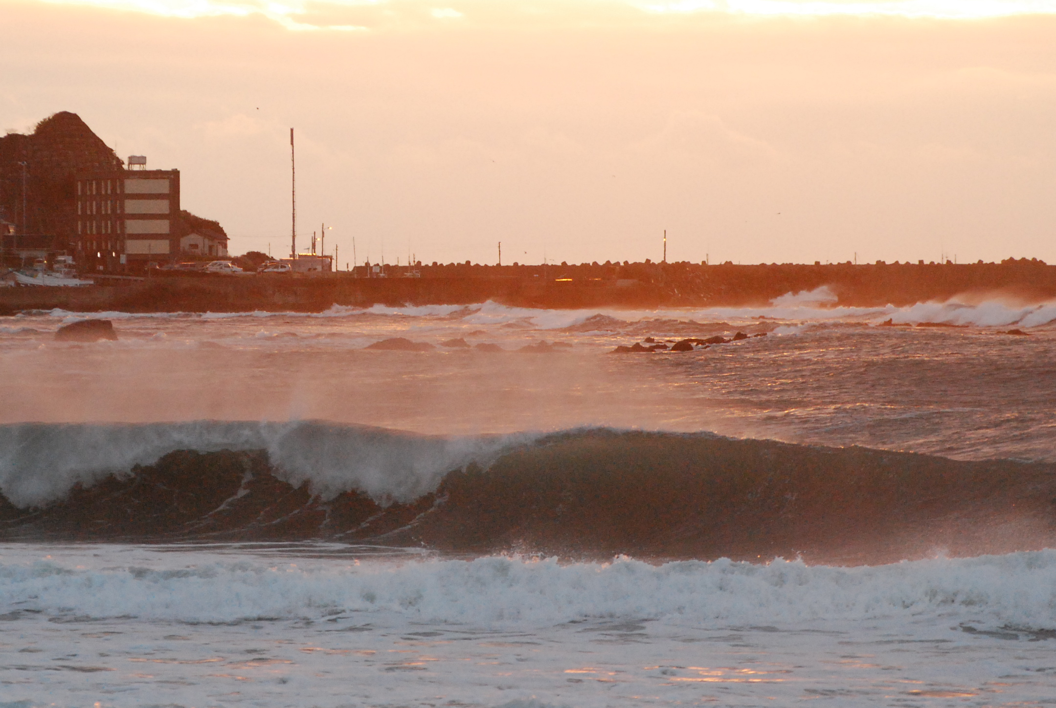 波は南を向いたポイントではハラ〜ムネとサイズがありますが。。。