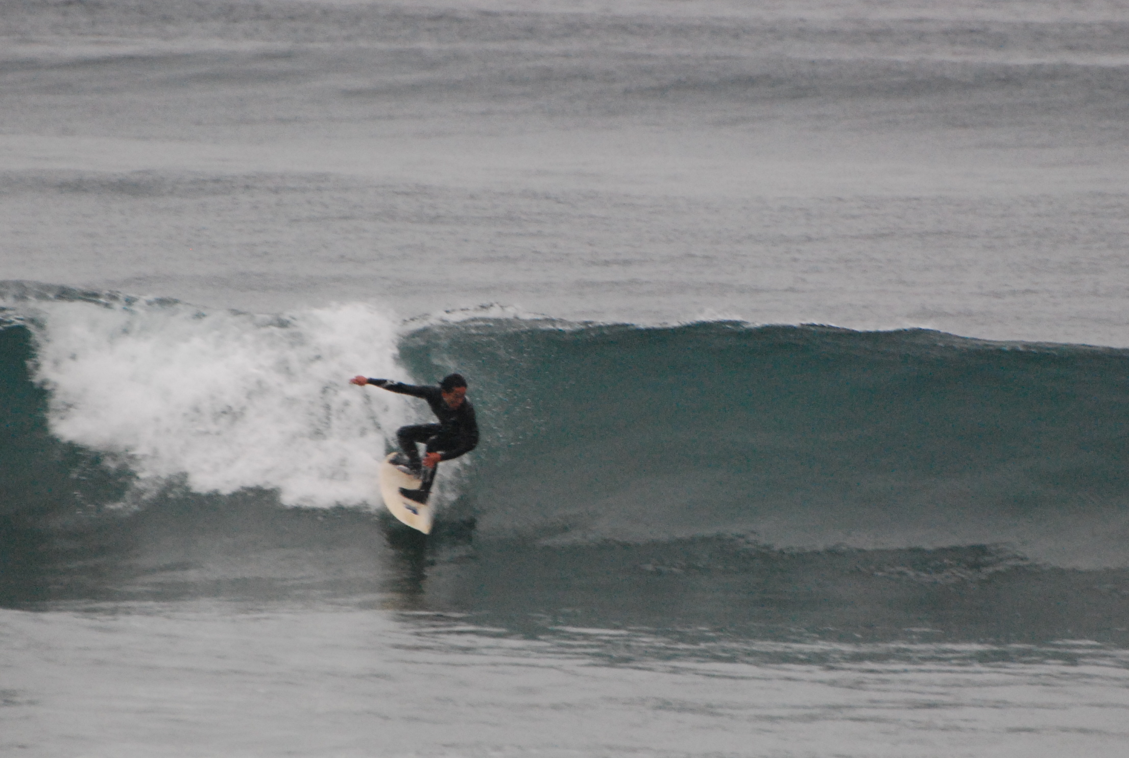 が、強めのオフショアを耐えればカタ〜アタマのショルダーの張る良い波に。。