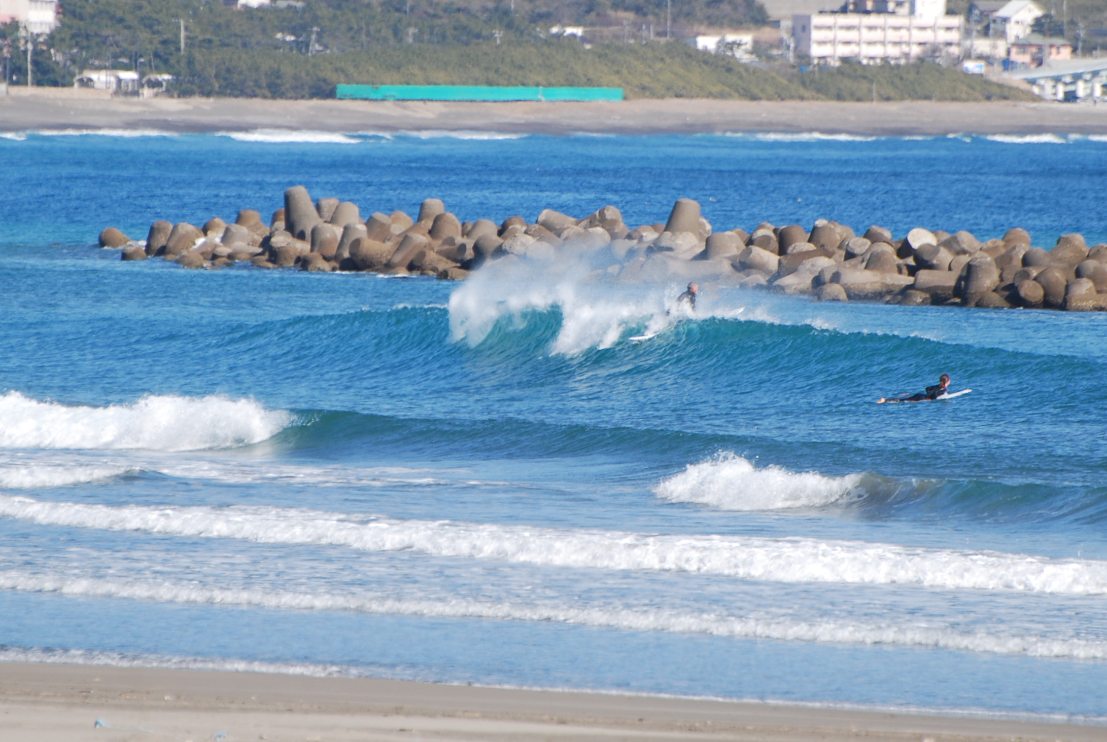 冬晴れの空が続く中、set間長めながら東ウネリメインの波がブレイクしています。