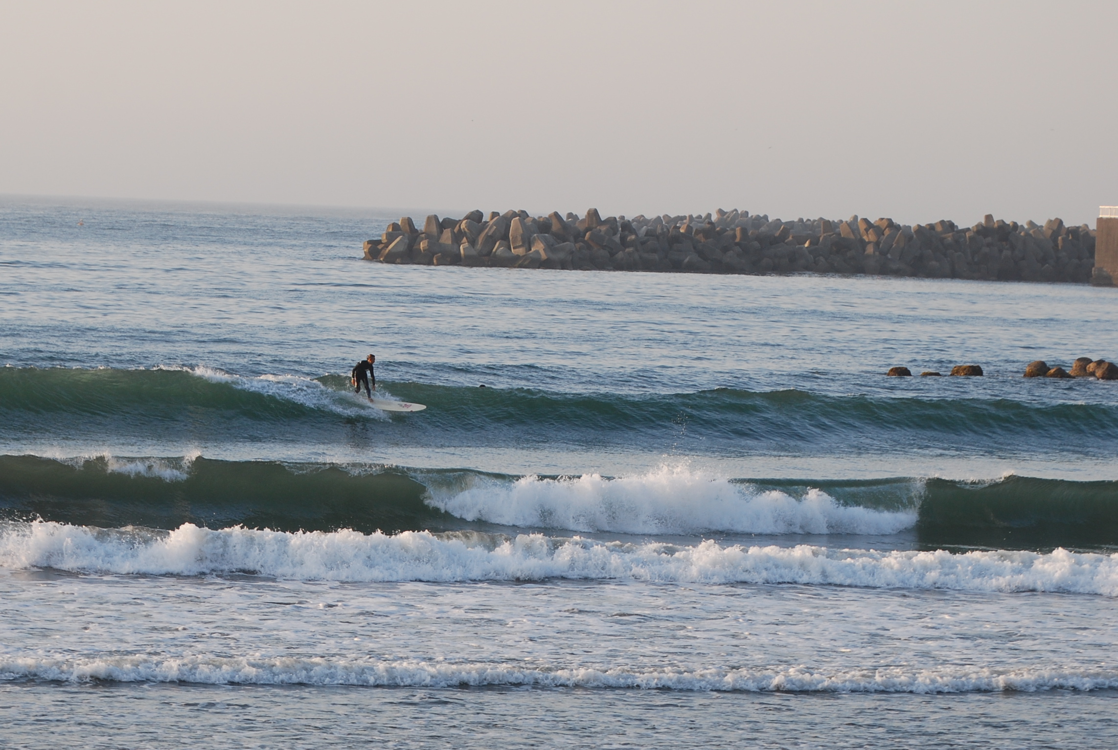明日は西から近づく前線の影響で南〜南西の風による風波に期待。