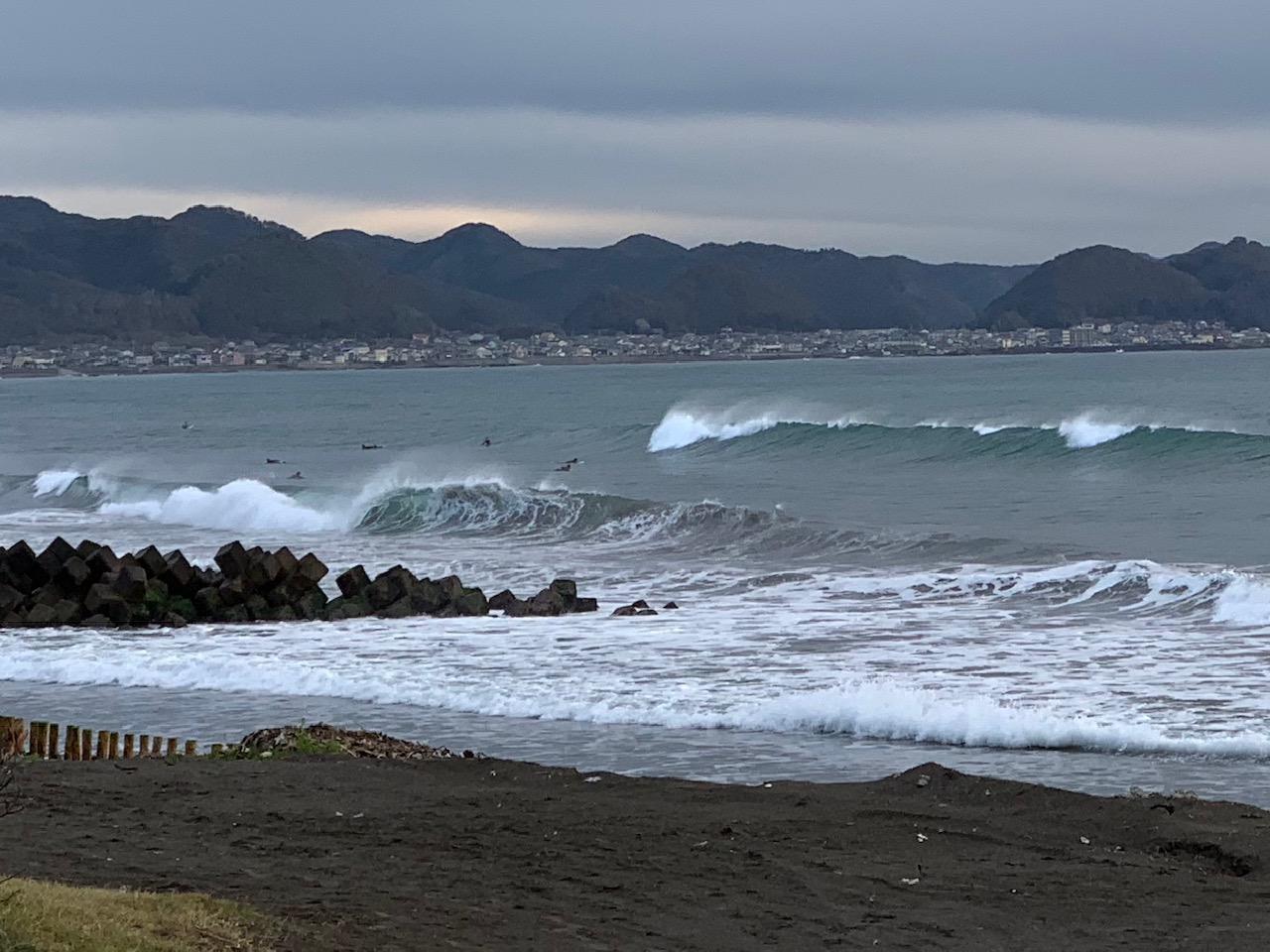 今朝は干潮時刻に合わせ海をチェックすると間隔は長めながら面の整ったキレイなブレイクに。