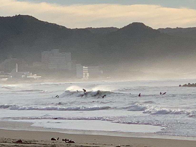 昨日吹き荒れた西〜西南西の風でサイズアップしていた波は抑えられ一気にサイズダウン。